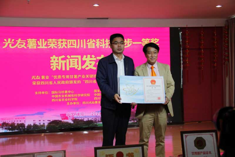 四川光友薯業(yè)有限公司(簡(jiǎn)稱(chēng):光友薯業(yè))成立于1992年10月18日,是一家以薯類(lèi)深加工為主的健康產(chǎn)業(yè)型、高新技術(shù)型民營(yíng)企業(yè)。光友薯業(yè)自1992年來(lái),不忘初心,專(zhuān)做薯業(yè),辛勤耕耘,在中國(guó)乃至世界把紅薯、馬鈴薯做成一大健康主食產(chǎn)業(yè),先后帶動(dòng)薯區(qū)60萬(wàn)薯農(nóng)脫貧致富,發(fā)展成為全球行業(yè)知名企業(yè)。連續(xù)九屆被國(guó)家八部委評(píng)定為“農(nóng)業(yè)產(chǎn)業(yè)化國(guó)家重點(diǎn)龍頭企業(yè)”,同時(shí)獲得“國(guó)家高新技術(shù)企業(yè)”、“全國(guó)主食加工業(yè)示范企業(yè)”、“全國(guó)馬鈴薯主食化產(chǎn)業(yè)十大領(lǐng)軍企業(yè)”、“全國(guó)守合同重信用企業(yè)” 、“推進(jìn)甘薯產(chǎn)業(yè)發(fā)展突出貢獻(xiàn)獎(jiǎng)”、“四川省科學(xué)技術(shù)進(jìn)步獎(jiǎng)一等獎(jiǎng)”等殊榮。光友薯業(yè)獲中國(guó)專(zhuān)利70余項(xiàng),光友方便粉絲獲得美國(guó)FDA認(rèn)證,成為出口美國(guó)、日本免檢薯類(lèi)健康主食。