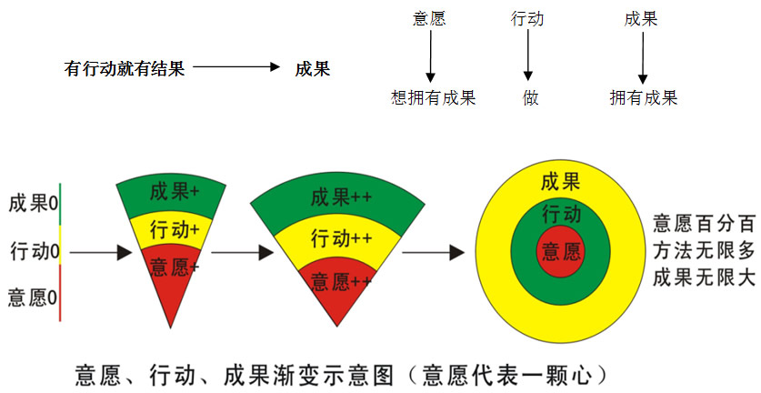 3、意愿、行動、成果漸變示意圖(意愿代表一顆心):