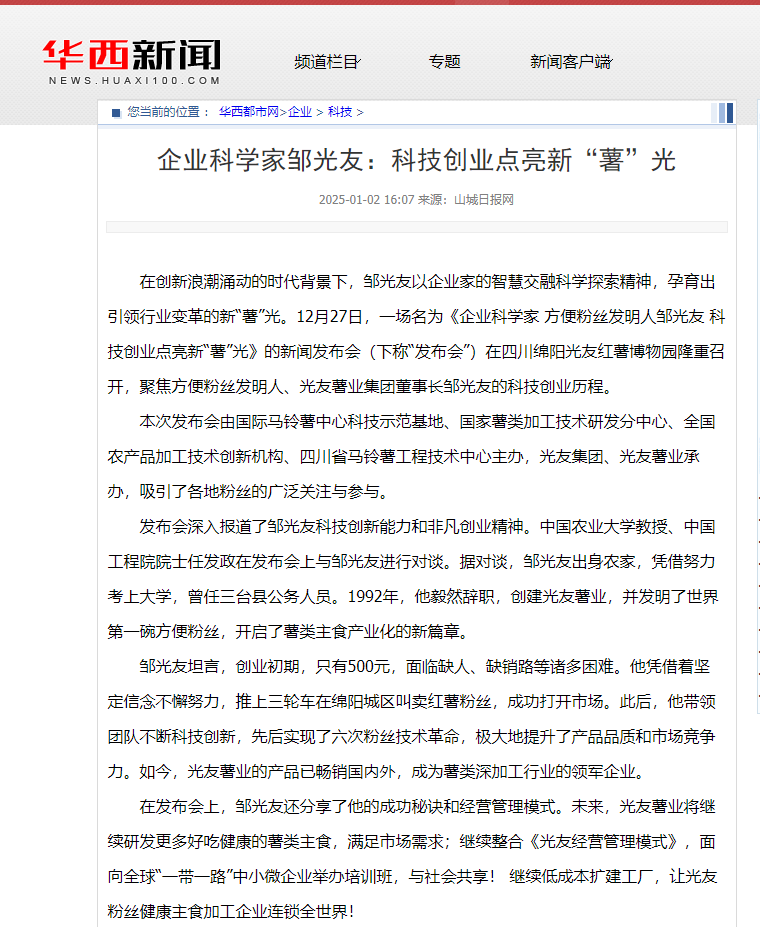 轉(zhuǎn)載華西新聞——企業(yè)科學(xué)家鄒光友:科技創(chuàng)業(yè)點(diǎn)亮新“薯”光