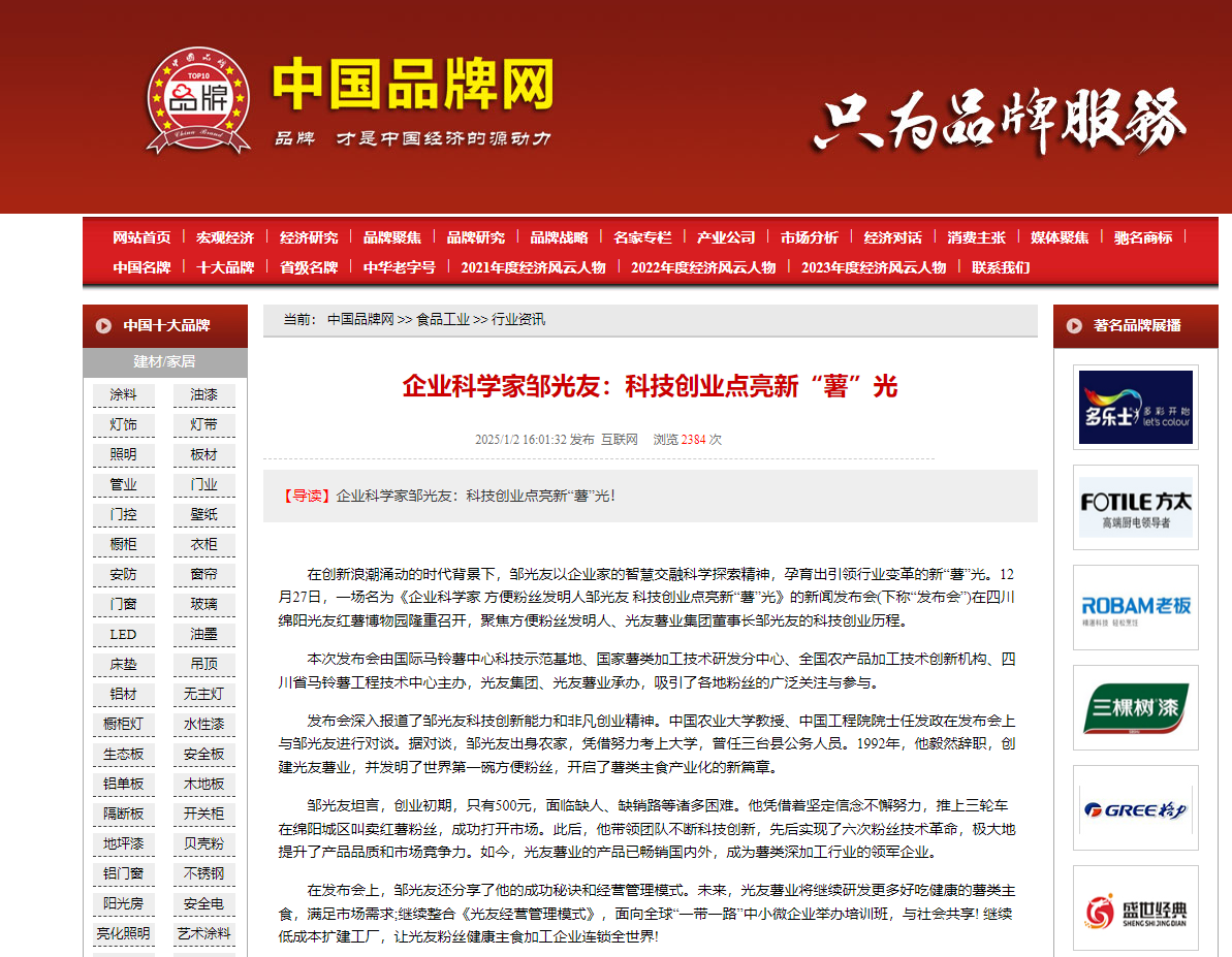 轉(zhuǎn)載中國品牌網(wǎng)——企業(yè)科學(xué)家鄒光友:科技創(chuàng)業(yè)點(diǎn)亮新“薯”光