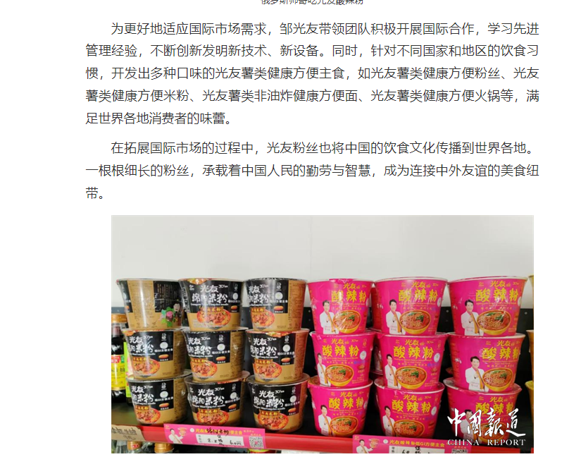 轉載中國報道網(wǎng)——鄒光友33年專注一根紅薯粉絲 暢銷全世界