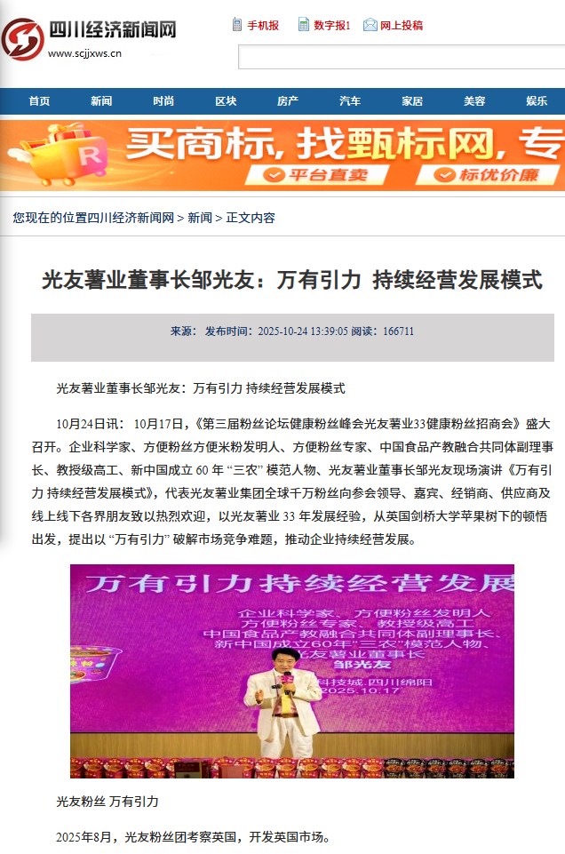 轉(zhuǎn)載四川經(jīng)濟新聞網(wǎng)-光友薯業(yè)董事長鄒光友:萬有引力 持續(xù)經(jīng)營發(fā)展模式