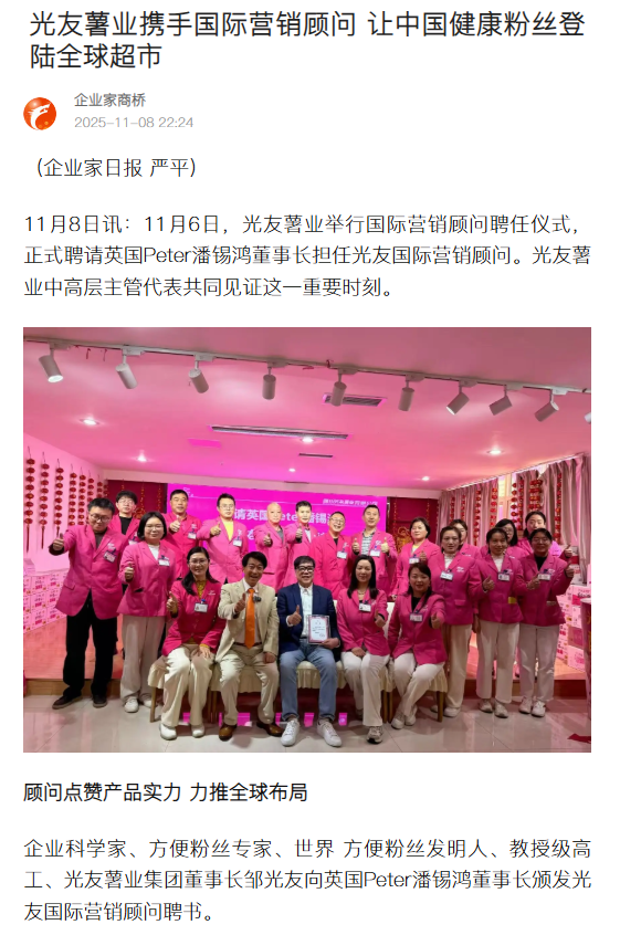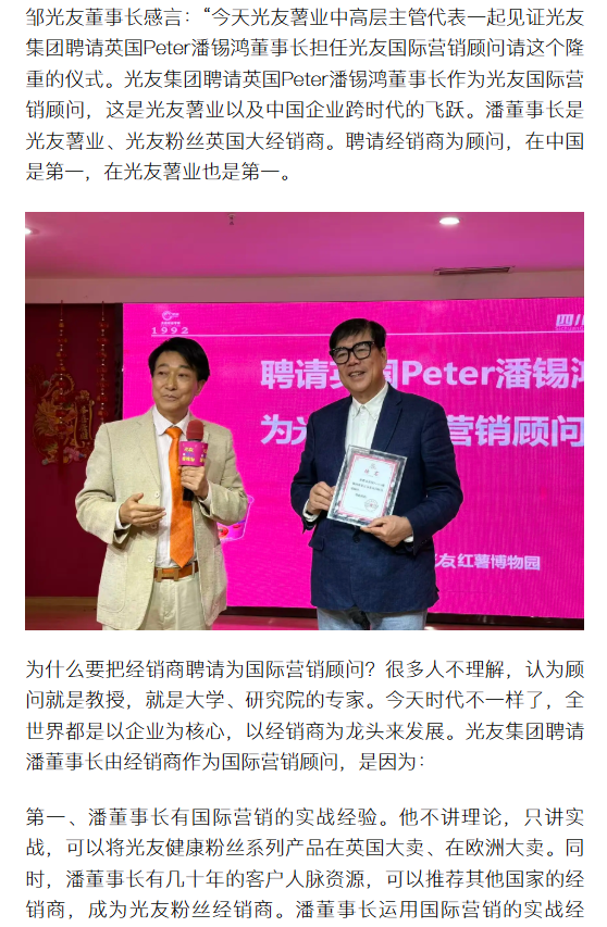 轉(zhuǎn)載搜狐網(wǎng)-光友薯業(yè)攜手國(guó)際營(yíng)銷(xiāo)顧問(wèn) 讓中國(guó)健康粉絲登陸全球超市