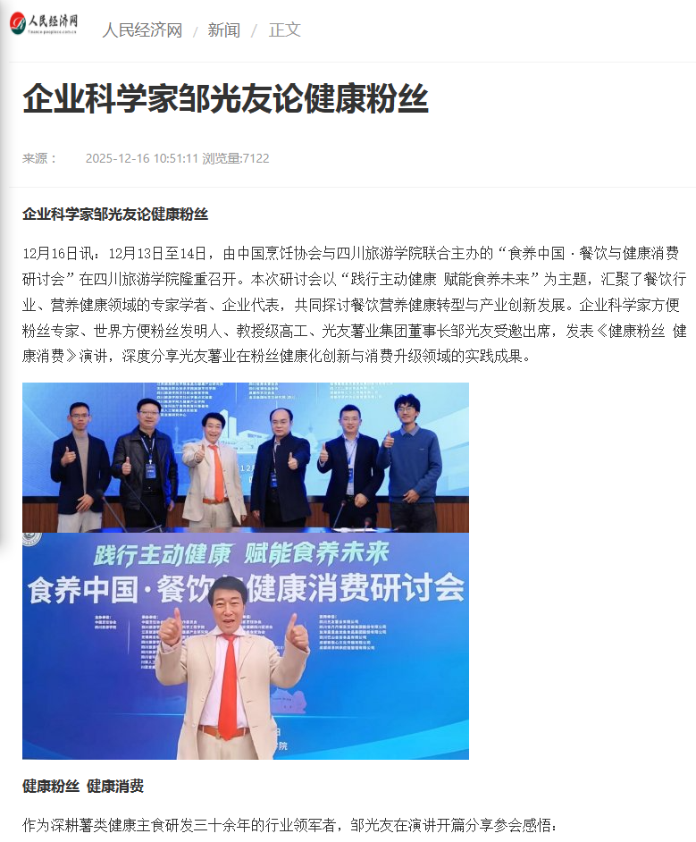 轉(zhuǎn)載人民經(jīng)濟網(wǎng)-企業(yè)科學家鄒光友論健康粉絲