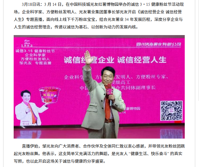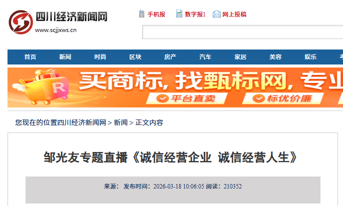 轉(zhuǎn)載四川經(jīng)濟新聞網(wǎng) 鄒光友專題直播《誠信經(jīng)營企業(yè) 誠信經(jīng)營人生》