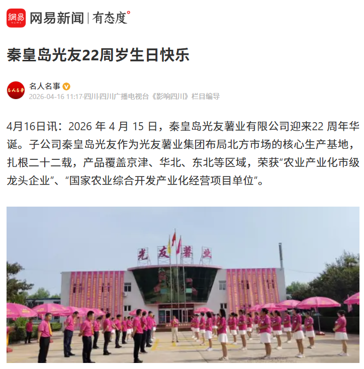 轉(zhuǎn)載網(wǎng)易新聞 秦皇島光友22周歲生日快樂