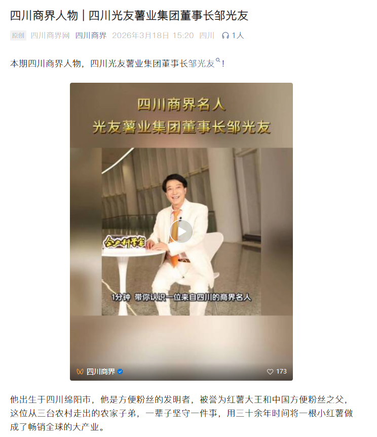 鄒光友專題直播《誠(chéng)信經(jīng)營(yíng)企業(yè) 誠(chéng)信經(jīng)營(yíng)人生》http://www.scjjxws.cn/xinwen/1223730.html